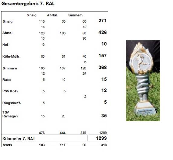 Untere Ahr Sinzig, die insgesamt 245 km erlaufen hatten. In
